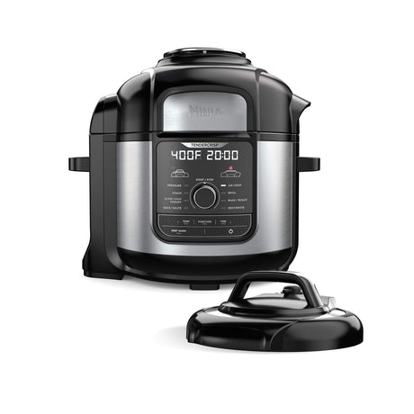 Ninja FD401 Foodi 12-in-1 Deluxe XL 8 qt. Pressure Cooker & Air Fryer that Steams, Slow Cooks, Sears, Sautés, Dehydrates & More, with 5 qt. Crisper Basket, Reversible Rack & Recipe Book, Silver