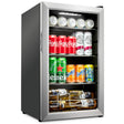 Ivation 101 Can Beverage Refrigerator | Freestanding Ultra Cool Mini Drink Fridge | Beer, Cocktails, Soda, Juice Cooler for Home & Office | Reversible Glass Door & Adjustable Shelving, Stainless Steel
