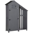 Outsunny Wooden Garden Storage Shed with 3 Shelves, Outdoor Garden Tool Storage Cabinet with Tilt Roof, Firewood Rack Log Carrier, 129 x 51.5 x 180cm, Grey